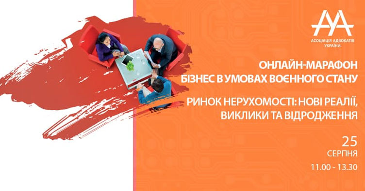 Сьогодні, 25 серпня, ВГО «Асоціація адвокатів України проводить онлайн-дискусію на тему «Бізнес в умовах воєнного стану. Ринок нерухомості: нові реалії, виклики та відродження».